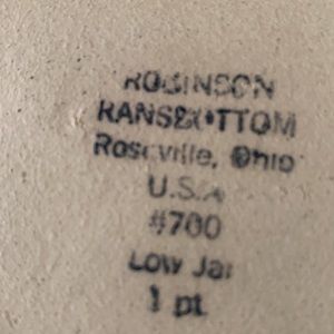 Robinson Ransbottom was Previously Roseville. This is made in Roseville, Ohio and is from early 1980’s. This is the old Sponge Ware pattern.