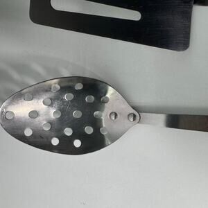 Vintage Robinson Stainless Steel Utensils Wooden Set of 3 -USA -Spoons Spatula