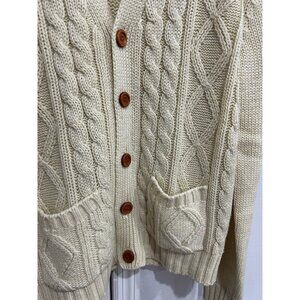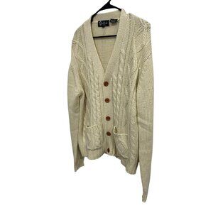 Vintage Robinsons Florida Cable Knit Cardigan Sweater Wooden Buttons SZ Large