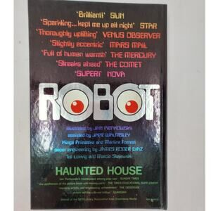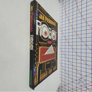 Slip into a retro imaginative world with Jan Pienkowski's Robot pop up book published in 1981 this hardcover pop up is a playful artifact of paper engineering. Vibrant fold outs and moving tabs create scenes that feel like little stage productions. Perfect for shelf styling or as a nostalgic gift it invites tactile exploration and adds mid century pop up charm to vintage collections and cozy reading nooks. A collectible that photographs beautifully and elevates vintage shelves.