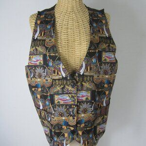 Vintage Robyn-Lyn Women Medium Sleeveless Button Front Egyptian Fish Cotton