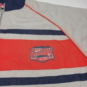 Vintage Rocawear 3/4 Sleeve Jacket Full Zip Men's Size XL Tan Red Blue 90's. See all photos for condition and measurements. Jacket has bleeding of the Red color . Zipper is broken