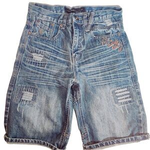 Vintage Rocawear Teens Size10/27 Denim Shorts Blue Patch Hip Hop Skater Y2K 90s