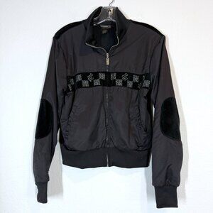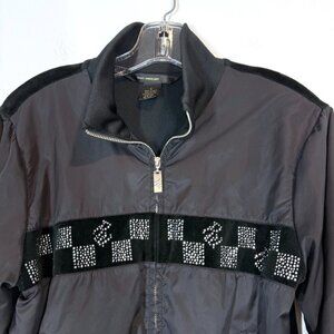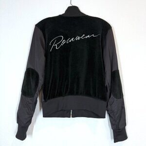 Vintage Rocawear Tracksuit Jacket and Matching Pants 2 Piece Set Black Velour Velvet Y2K 90s Embellished Stones Elbow Pads in a Tag Size Large.