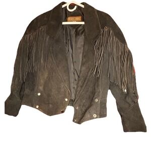 Vintage Rock Creek Jacket Womens Large Black Suede Fringe Western Concho 90s