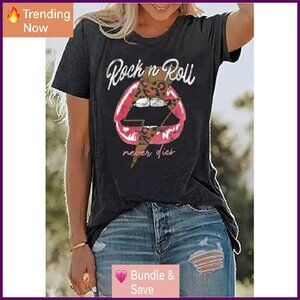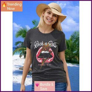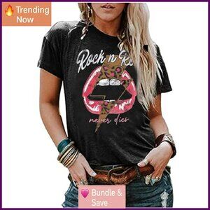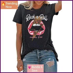 • Style: Vintage rock music graphic design featuring a leopard lightning lips print and funny lettering for a bold, music-loving statement.