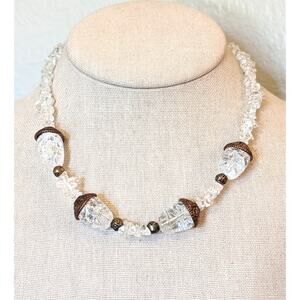 Vintage Rock Quartz Chip Acorn Bead 16" Necklace W/ Barrel Clasp. Designed to look like little quartz acorns with their little copper colored caps. This pre-owned necklace is in excellent condition.