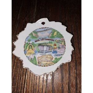 Good Vintage Condition Souvenir of Rock City Lookout Mountain Chattanooga, Tennessee Small Miniature Two-Piece Cup and Saucer Set- Made in Japan. Some Gold is Rubbing off the Trim. Swing Along Bridge, Goldilocks and the Three Bears, Balanced Rock, Lovers Leap, Entrance to Fairyland Caverns, Lookout Mountain, and Rock City Gardens