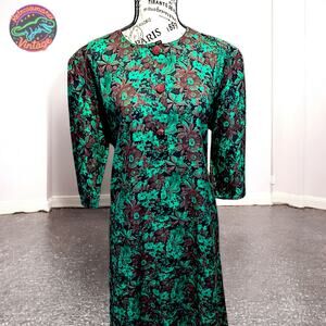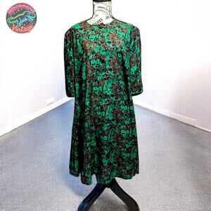 Vintage Rockabilly Mod Retro Green Floral Day Dress, Plus Size Swing Midi Dress