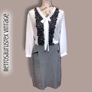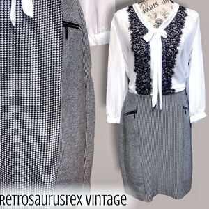 Retrosaurusrex Vintage; vtg; twee; pinup; rockabilly; pencil; wiggle; business casual; retro; work attire appropriate; CEO; power suit; stretchy; comfy; comfortable; herringbone; funky; mod; Vintage Rockabilly Twee Houndstooth Elastic Stretch Pencil Skirt, Large