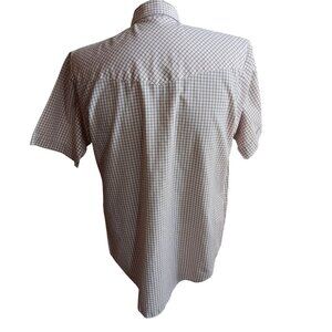 This vintage rockabilly shirt features a stylish white and brown checker pattern, perfect for retro enthusiasts. A classic 80s piece, it offers a comfortable fit and makes a unique addition to any wardrobe.