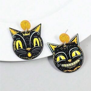 BACK IN STOCK! Get your Spooky on with these awesome Vintage inspired, Adorable Scaredy Cat Dangling Earrings! Cute faces, Black and Yellow with unique design! Perfect for your Gothabilly, Rockabilly, Retro, or Vintage look!
