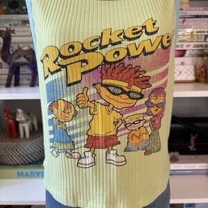 Vintage Rocket Power Logo Y2K Skater Graphic Baby Ribbed Tank - Green Wms XXL