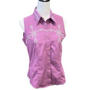 Vintage Rockies Sleeveless Purple Western Embroidered Button Up Blouse (M) EUC