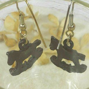 Vintage Rocking Horse Earrings Jewelry Black Steed Toy Red Saddle Dangle Earring