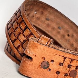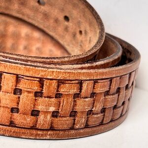 Vintage Rockmount Ranchwear Brown Saddle Leather Woven Western Belt