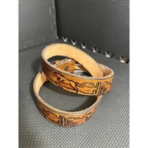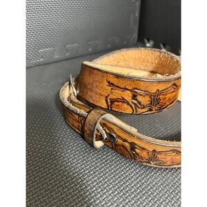 Vintage Rocky Tooled Leather Belt Horse Animal Nature Mens Size 34