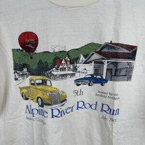 • Vintage Rod Run Shirt White Single Stitch Alpine River Helen GA Car Show 1991