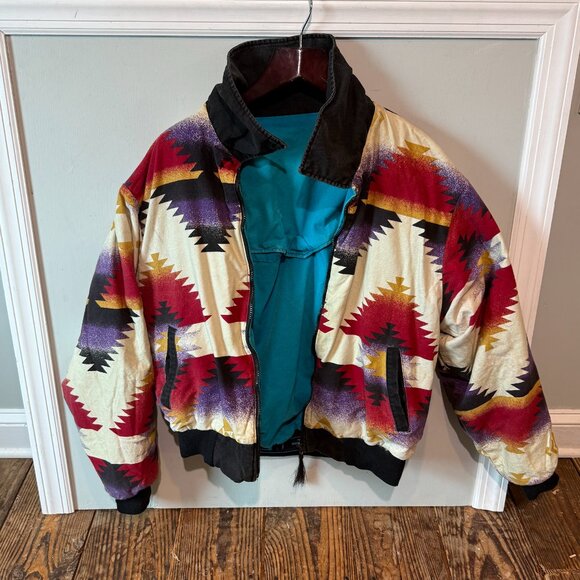 Vintage Rode Walker Aztec Southwestern Tribal Reversible Jacket 80s Mens Size XL