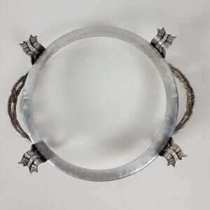 Vintage Rodney Kent Divided Glass Dish Hand Wrought Aluminum Floral Tulip Cover