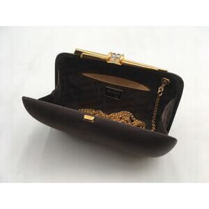 Vintage Rodo Italy Brown Satin Evening Clutch Purse w/Chain Strap