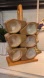 Bring timeless craftsmanship to your kitchen with this vintage Rodolfo Padilla stoneware mug set with original wood rack.