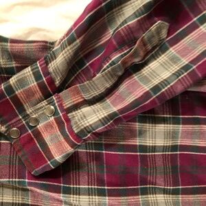 Vintage Roebuck Long Sleeve Maoon plaid light flannel shirt XL
