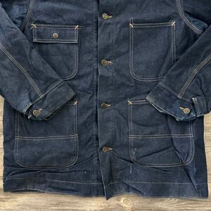Vintage Roebucks Blanket Lined Denim Chore Coat Jacket Size Large Dark Wash