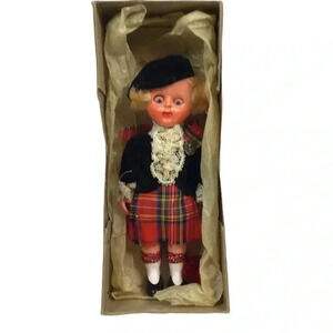 Vintage Rogark style Scottish doll. High quality. Eyes open and close. 6 inches high. No rips or tears, needs to be cleaned. No idea what era this is from. Smoke and pet free home.