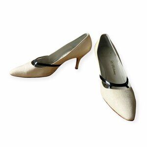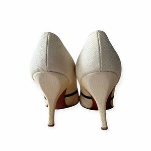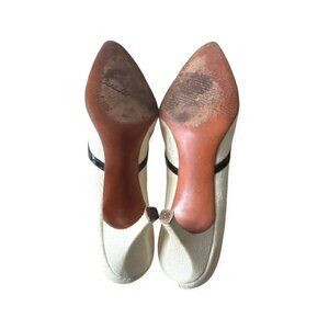 Vintage Roger Vivier Ecru Fabric Pumps with Black Patent Trim, Size 6.5B