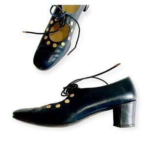 Vintage Roger Vivier Navy Blue Leather Ghillie Pumps with Metal Ornamentation, N