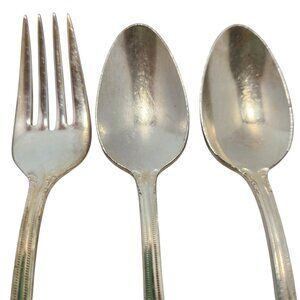 CONDITION: Antique, preowned with visible tarnishing and surface wear on utensils.