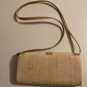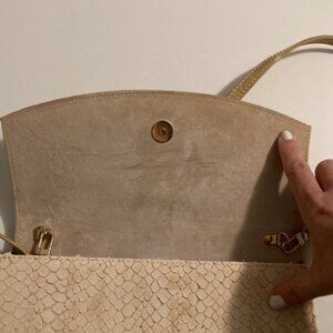 ๐โจ Vintage Rolando Bellagio Beige Python-Embossed Leather Clutch w/ Gold Buckle & Strap โจ๐