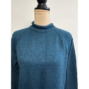 Vintage Roll Neck Chunky Knit Sweater Women's Teal Cape Cod Preppy 90s Y2K