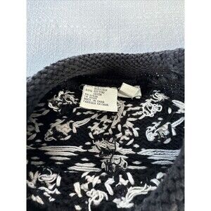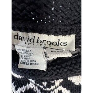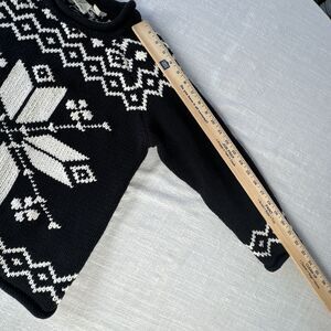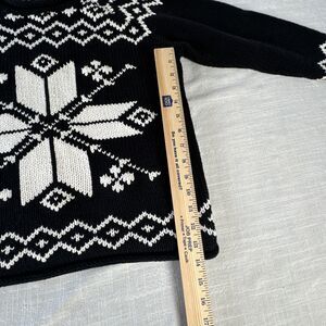 Cozy vintage 90s roll neck knit snowflake sweater by David Brooks. Women’s Petite Large. Classic ski lodge style with a bold snowflake design in black and white. Features rolled edges on the sleeves and hem for a relaxed, lived-in look. Perfect for winter, après ski, or holiday wear.