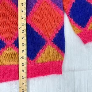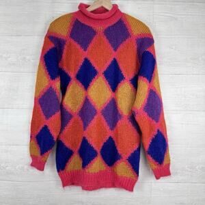 Vintage Rolled Neck Sweater Women M Mohair Blend Whimsical Diamond Oversized