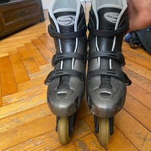 Vintage Rollerblade Viablade Parkway Triforce Inline Skates with adjustable straps. Women’s size 8.5. (The sticker for the size was taken off by a family member a long time ago, so it doesn’t show). 76MM Wheels. Black/Grey. Made in Italy.