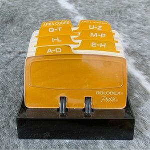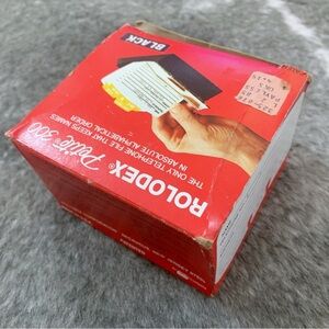Here’s a super cool vintage Rolodex. This is the Petite 300 style. Still in the original box, the box does show wear as shown. Great shape, some dust and light wear. All of the address papers are fully unused. Perfect little vintage item that’s both useful and cute. :)