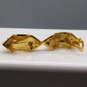 Vintage Roman Crystal Hoop Earrings, Black and White Pave over Gold Tone Clip On