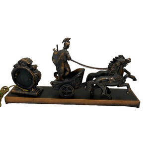 Vintage Roman Empire Gladiator Horse Drawn Chariot Mantel Desk Clock