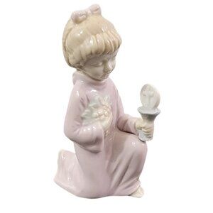 Beautiful and Delicate Depiction of Kneeling Girl in Pink Dress Figurine