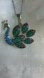 Beautiful vintage Roman simulated diamonds silver-plated signed rmn peacock necklace 2 inches tall by 2.25 inches wide, 26 inches long chain.