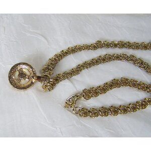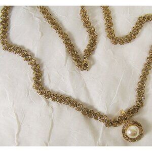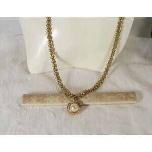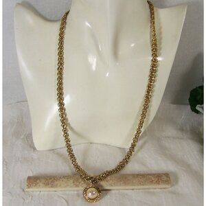 Vintage Roman Signed Necklace Faux Pearl Pendant Beautiful Flat Chain Style 24"