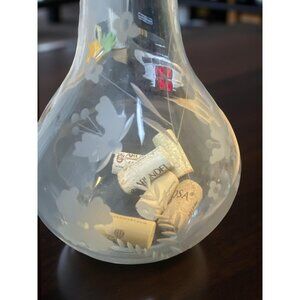 Elevate your table or bar cart with this elegant vintage Romanian crystal decanter, beautifully hand-etched with delicate floral and leaf motifs. The graceful teardrop shape and clear glass stopper add timeless charm. Perfect for wine, liqueur, infused oils—or simply as a romantic accent in a vintage or cottagecore-themed space. Perfect for holding wine corks too in a display.