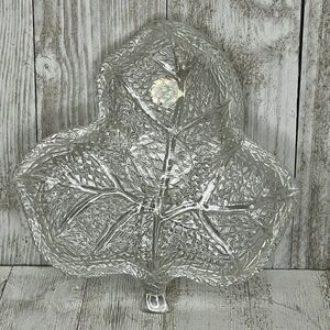 Vintage Romanian Pressed Crystal Leaf Shaped Divided Serving Dish