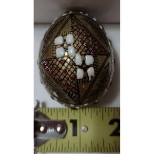 Vintage Romanian Pysanky Hand Painted Real Easter Egg Gold Red Checkered Diamond