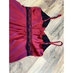 Vintage Romantic Goth Red Satin Lace Babydoll Cami Women's M