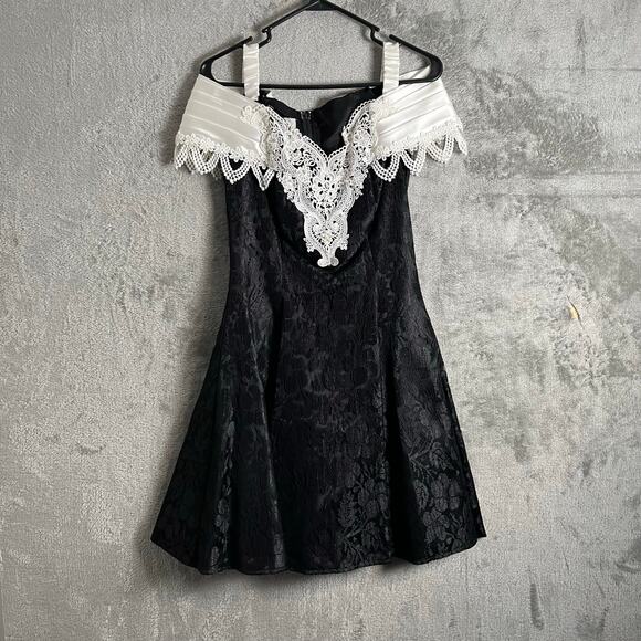 Vintage Romantic Gothic Lace Dress Y2K Corset Style Mini Victorian Romanticism S