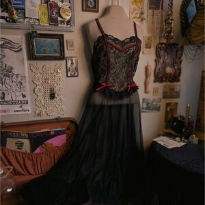 Vintage Romantic Moods Floral Butteflies Satin Slip Dress Size M