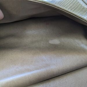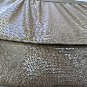 Vintage Rome Tan Snakeskin Shoulder Bag. High gloss finish in excellent condition. Two small brass pieces on either side at the top that have some blemishes. Top flap snaps shut. No pockets. Inside has a few areas of discoloration on the backside. See inside picture.